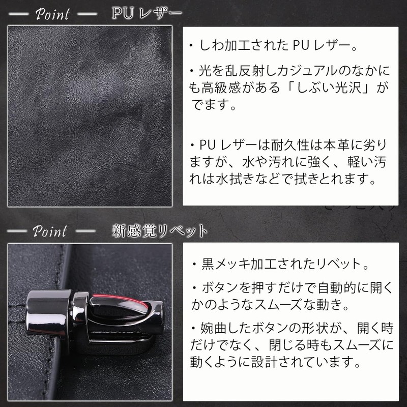 - [Splash Glossy PU Leather] Made with PU leather that has been wrinkled and has a casual feel and luxurious feel