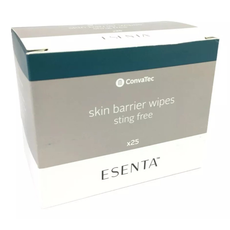 Cada compra es por una caja con 25 toallitas en empaque individual de Convatec Esenta skin barrier wipes sting free.