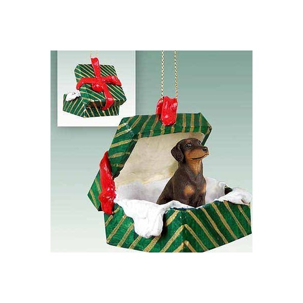 Conversation Concepts Doberman Pinscher Gift Box Christmas Ornament Red Uncropped - Delightful!