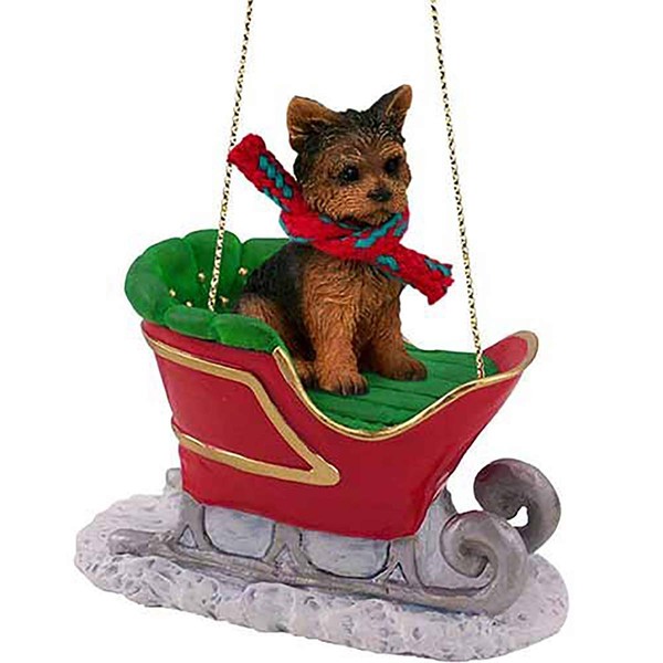 Conversation Concepts Yorkshire Terrier, Puppy Cut, Sleigh Ride Ornament