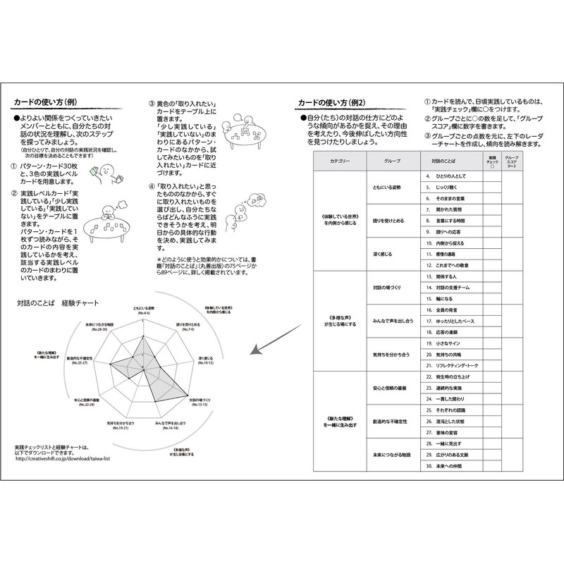 "Conversation Sayings Card" is a tool for everyone to discuss while referring to the heart of a conversation to build a better relationship. There are 30 interactive hearts in total, and one card has a heart The cards can be used alone, but please see them and discuss with those who want to make a better relationship. By referring to the secrets of solving problems while interacting well and you will be able to find a way to interact with them or to help them get a little better.