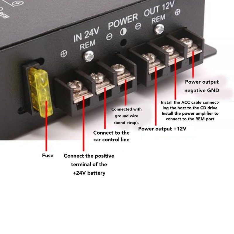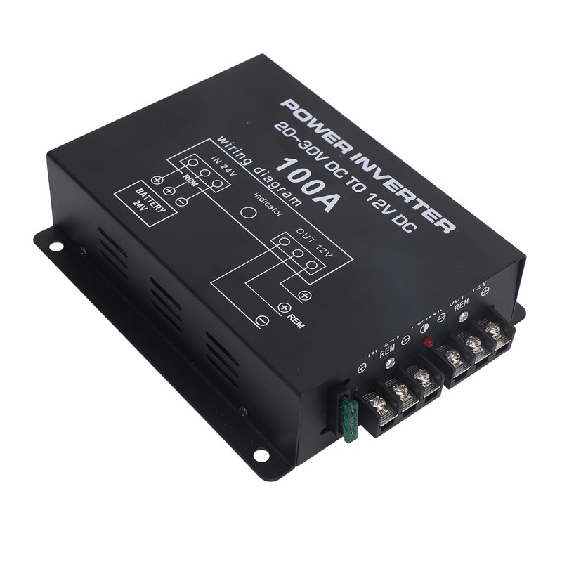 - [Conversión de alta eficiencia]: el dispositivo convierte eficientemente de 24 V a de 12 V, lo que garantiza un suministro de energía estable para equipos de 12 V en vehículos de 24 V.