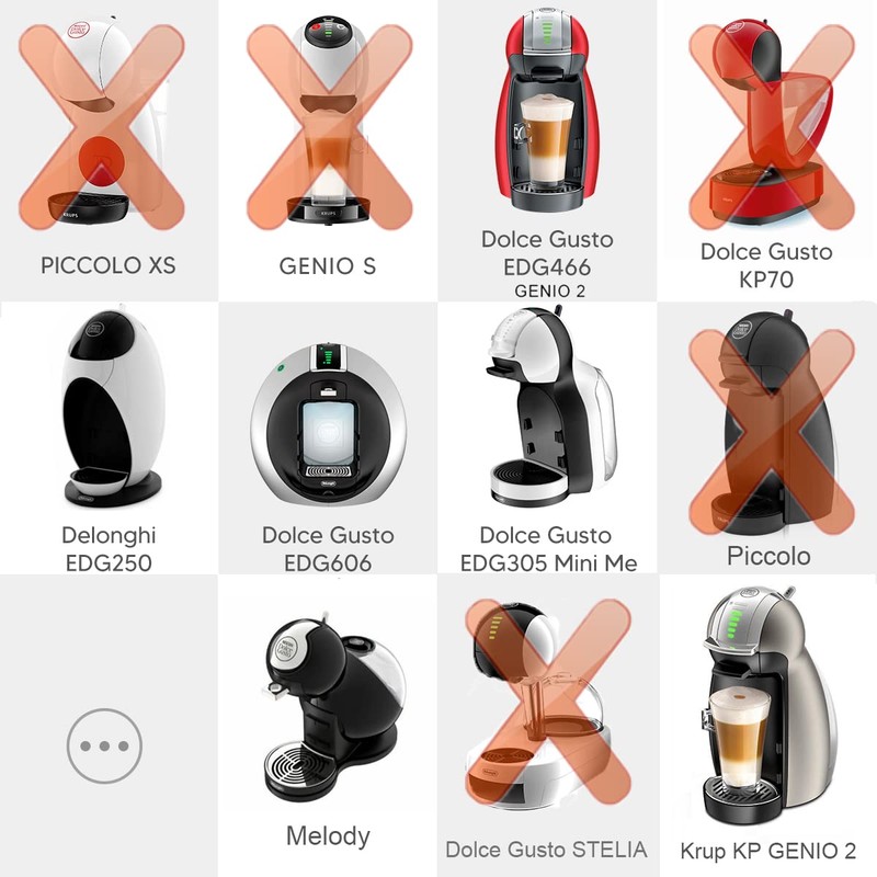 - Compatible con: DOLCE GUSTO EDG606; EDG466 Genio2; EDG305 Mini Me; EDG455TEX1; MELODY Machine