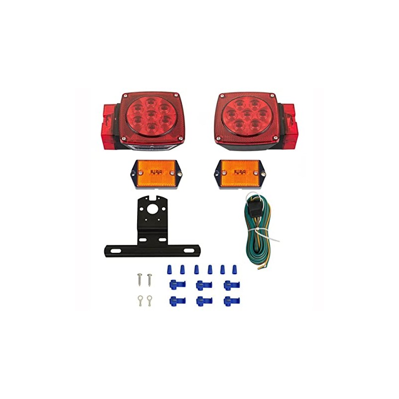 - INCLUSION - Kit includes (2) stop/tail/turn lights driver side (Left) & passenger side (Right), (2) Marker and Clearance lights, a wire harness of 25’ & 4’ long wires with standard 4-way plugs, black coated license plate bracket with corrosion resistance, and mounting hardware