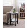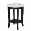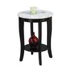 The American Heritage Round End Table combines elegance and sophistication. Featuring a bottom shelf allowing for additional storage and display area. Available in multiple finishes, and the slightly curved legs this piece will easily complement any new or existing decor.