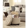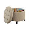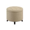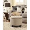 Make a bold statement with the Designs4Comfort Round Storage Ottoman by Convenience Concepts. This transitional ottoman adds stylish functionality to any room in your home. Perfect for small spaces; this ottoman can be paired with your favorite sofa chair or used as a beautiful decorative accent piece. The lid’s dense foam cushion offers maximum comfort when being used as a footrest. Store a blanket and more in this multi-use piece that features a removable lid for concealed storage. The top of the ottoman lid showcases fine stitching and luxurious button tufting for a neat and firm finish. The frame of this chic footstool is built from solid and manufactured wood and is upholstered in a variety of rich finishes to choose from. The sturdy legs are also crafted from solid rubberwood; so this transitional piece is sure to last. Assembly after delivery is easy with only the feet needing attachment. Complete your modern home design today with the Designs4Comfort Round Accent Storage Ottoman from Convenience Concepts.