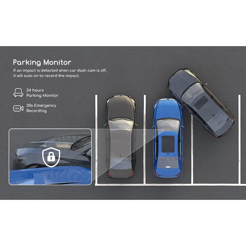 Monitoring your car condition for 24 hours with continuous power supply. Parking mode monitors your car’s surroundings when you are away for a vacation or leaving your car for quite some time. (This feature requires a hardwire kit and is not included in the package)
