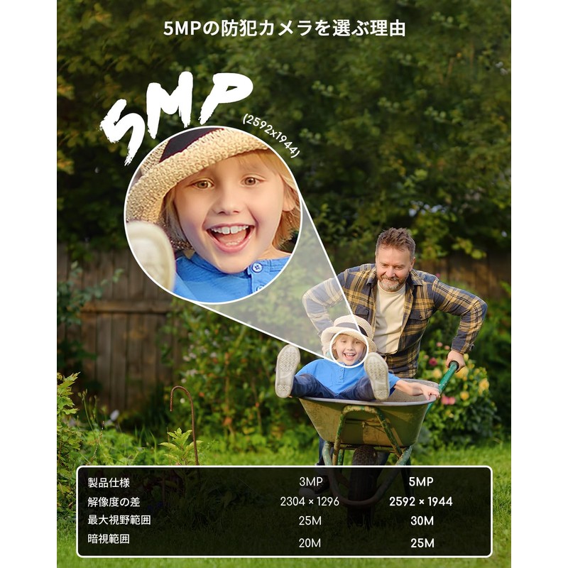 - (Various Recording & 2 Storage & H.265 Data Compression) The surveillance camera can record 24/7 continuous recording, schedule recording, and detection recording, automatically overwrite old data in order of time stamps, supporting SD card (128G) and cloud storage. Each recording mode has its own display so you can quickly find the desired recording when watching the recording. Using H.265 data compression technology, 5 megapixels can transfer more smoothly and real-time transmission in the same network environment than 1080p security camera, so you don't have to worry about waiting for screen reading. You can instantly know the condition of your home and give you peace of mind. It can also effectively reduce the size of the recorded files, save up to 50% more storage space than the general product, and save more recording and evidence