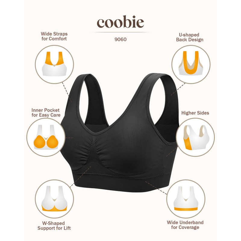 Coobie Seamless Comfort Bra,Black,X-Large