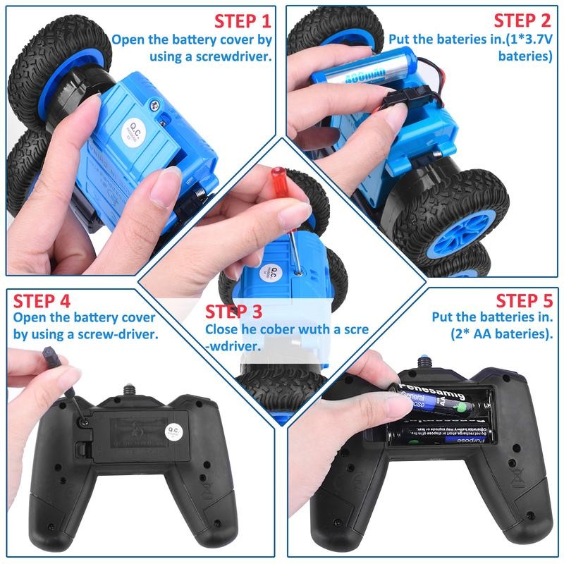 Shockproof and Off-Road:the anti-crash stunt RC car is durable and lightweight. Strong grip for climbing up to 45°. Durable wheels and well-constructed anti-slip tyres ensure high speed and stable performance on grassland, sand, gravel, snow and concrete road.