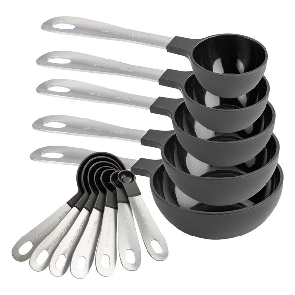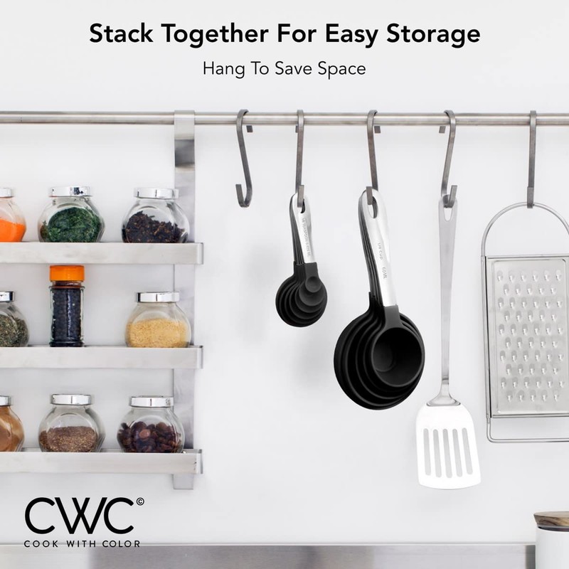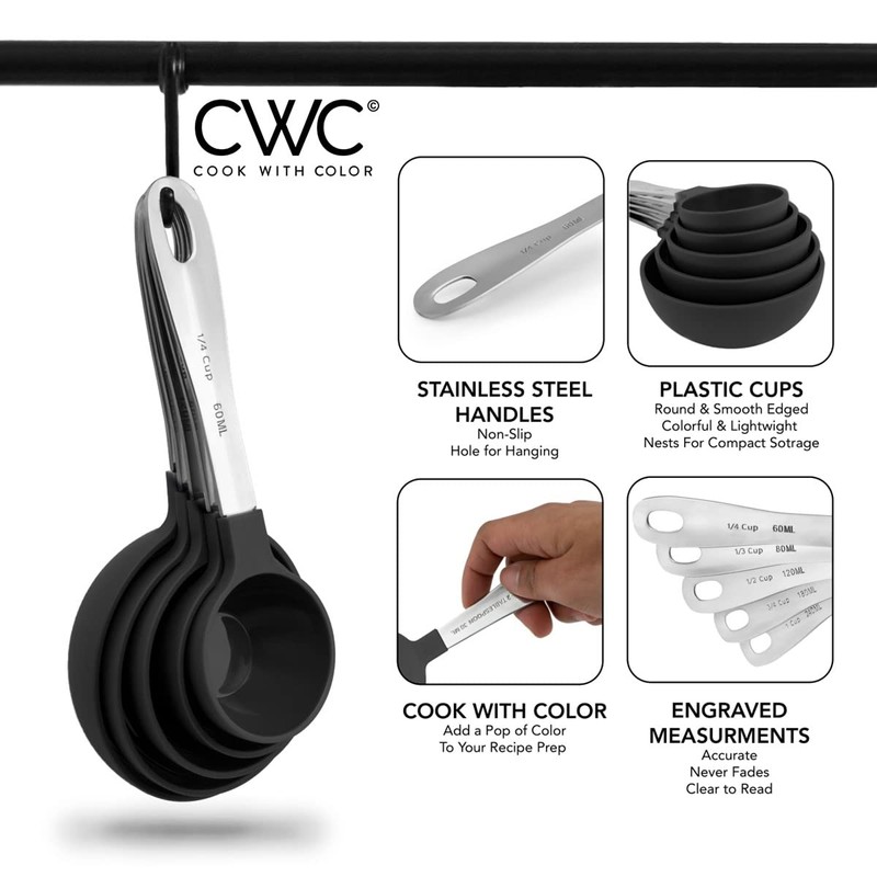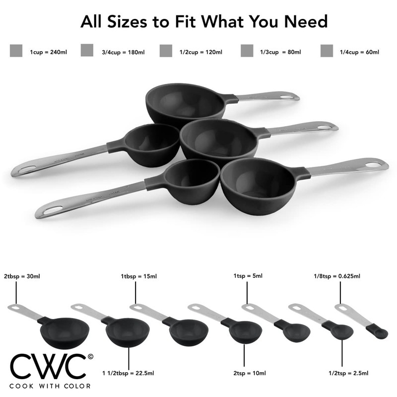 Cook with Color 12 PC Measuring Cups Set and Measuring Spoon Set/Stainless Steel Handles/Nesting Kitchen Measuring Set/Liquid Measuring Cup Set/Dry Measuring Cup Set (Black)