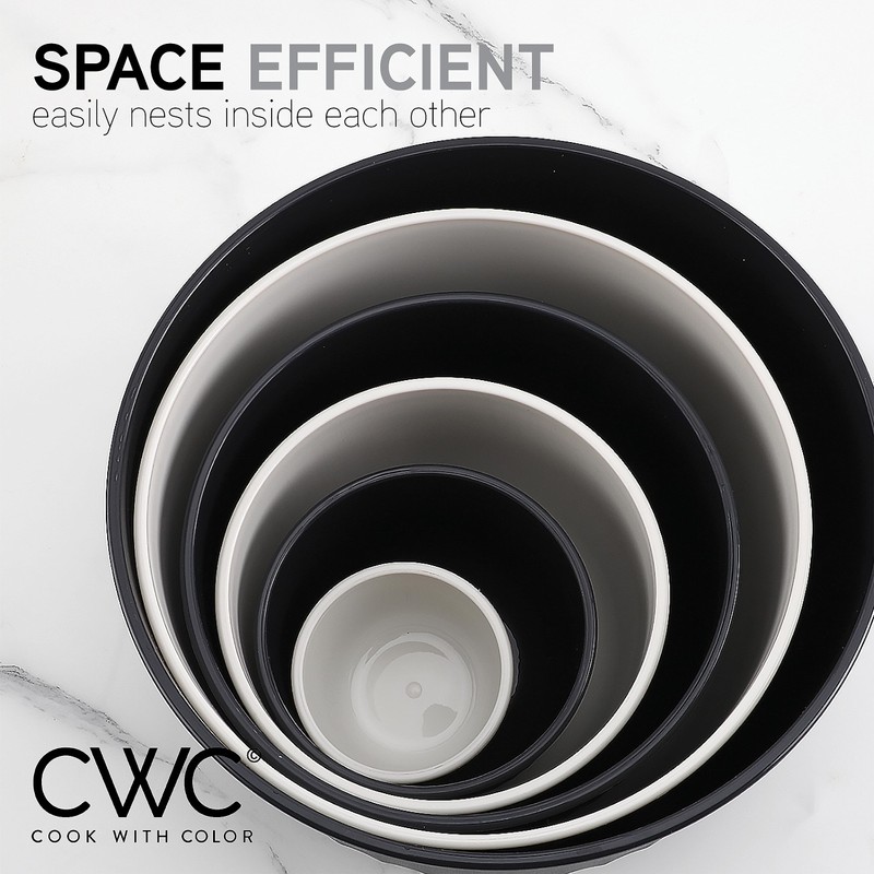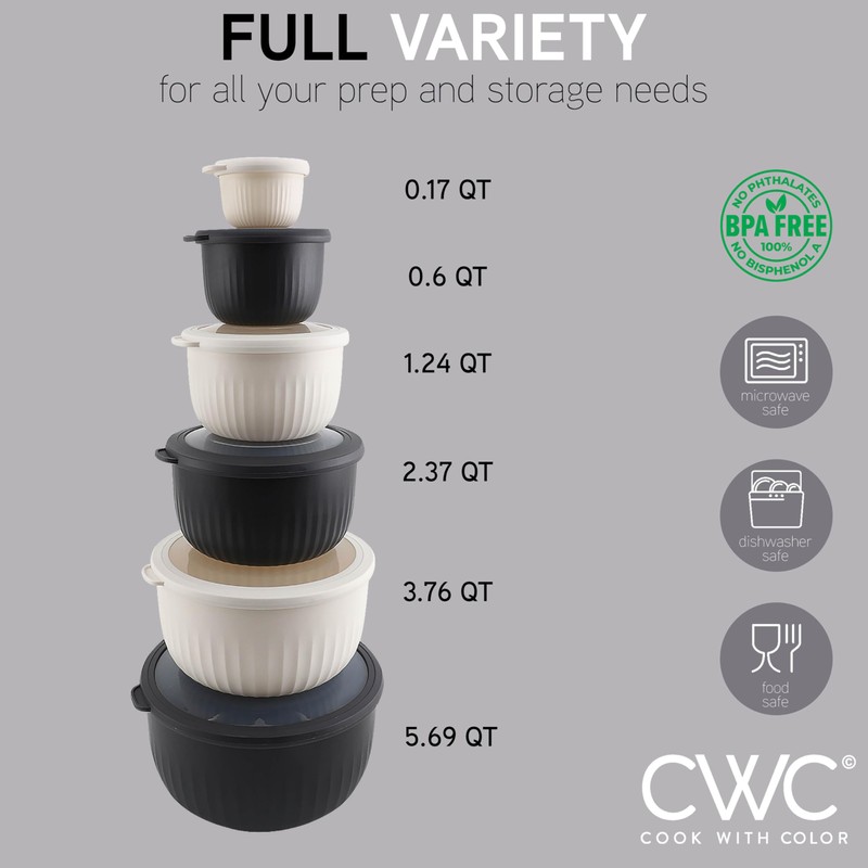 - Cook with Color 12 piece plastic mixing bowl set - non slip bowls with lids; easy to clean, sturdy mixing bowls.