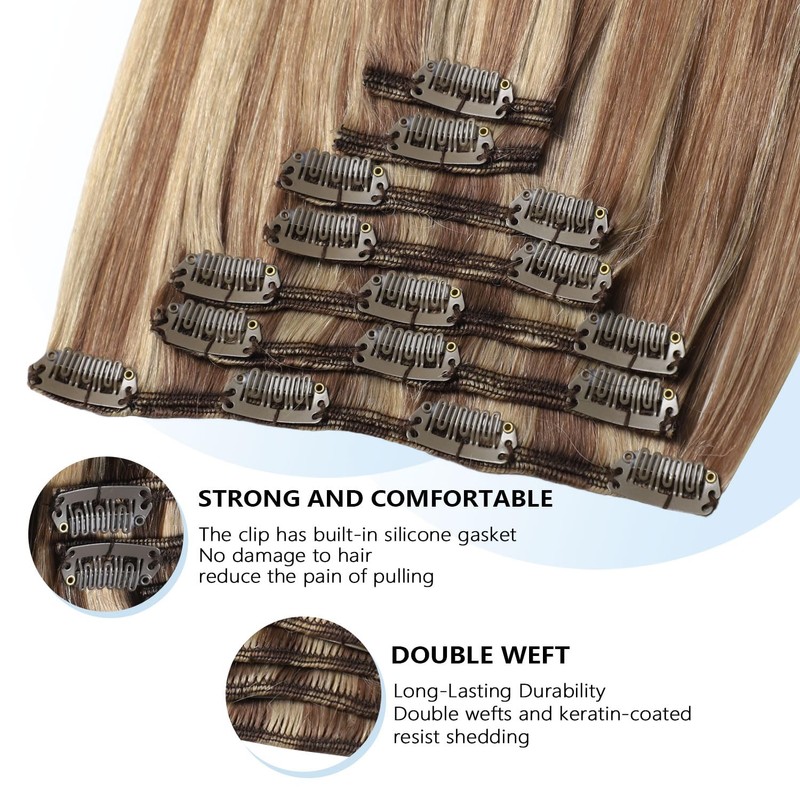 - 5. Clip & Glam in 5 Minutes Flat! COOKAYU’s clip-in human hair extensions let you DIY salon-level volume solo—no mirror helper needed. Just snap the silicone pads onto your roots, blend, and boom: instant fullness that lasts all day. Thinner hair? Layer two packs for red-carpet oomph!"