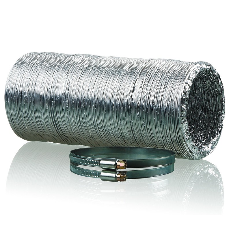 - 3m length of 125mm (5 inch) high temperature, semi rigid, metal aluminium ducting & 2 jubilee clips.