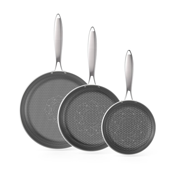 COOKER KING 3-Ply Stainless Steel Cookware Set, Non-stick, Non-toxic Includes 8", 10" and 12" Frying Pan, Skillet with Stay-Cool Handles, Dishwasher & Oven Safe, Compatible with All Cooktops