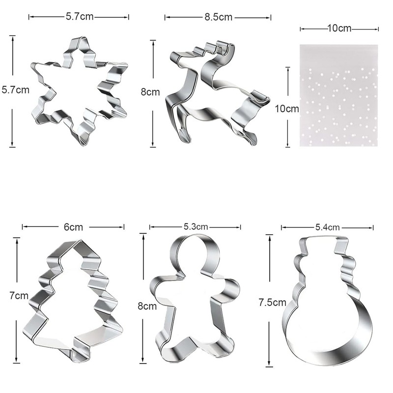 - SET OF 5 CHRISTMAS COOKIE CUTTERS - Kitchwise's cookie cutters including 5 shapes - Snowflake, Reindeer, Christmas Tree, Gingerbread Man and Snowman. Each set includes another 100 cookie bags!