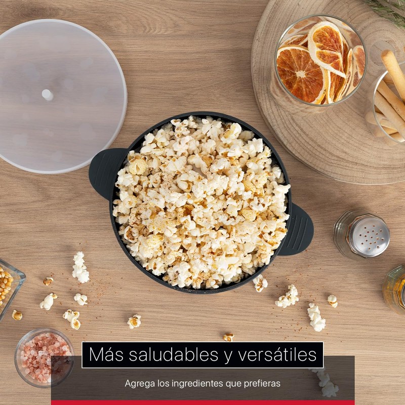 - SILICONA ANTIADHERENTE: Nuestra popcorn maker prepara palomitas sin aceites adicionales gracias al material de silicona con propiedades antiadherentes, asegurando una limpieza fácil.