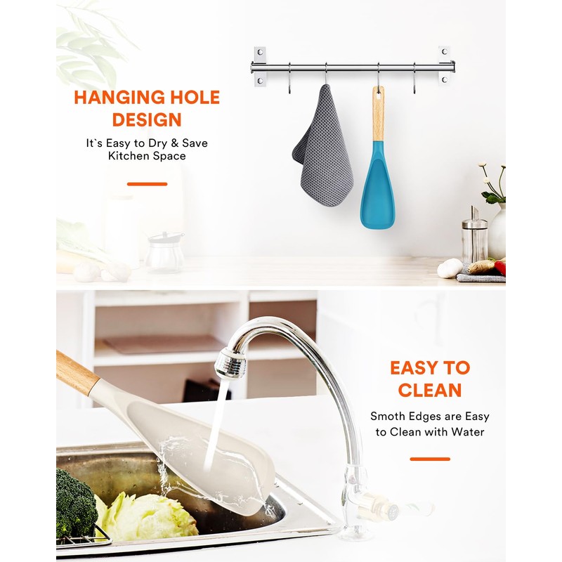 - Gentle on cookware: The smooth edges of our silicone cooking spoon are gentle on your non-stick pots, pans, and baking dishes, preventing scratches and damage while cooking