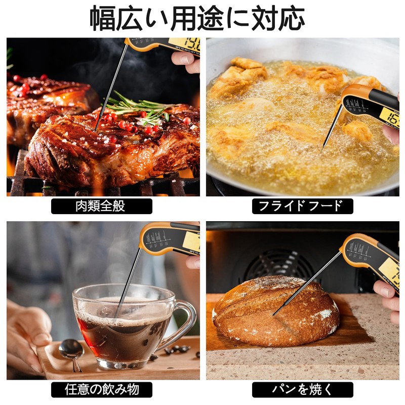 • 【MULTI-PURPOSE】This digital meat thermometer is the perfect choice for kitchen and outdoor cooking. Can be used for barbecues and fries like turkey, and a variety of beverages and baking