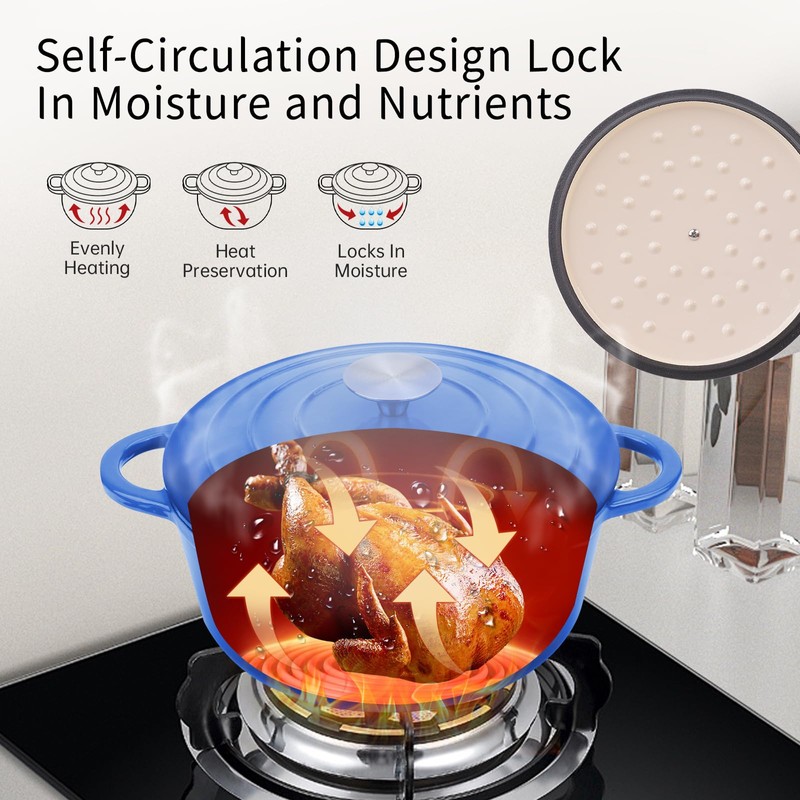• HIGH-QUALITY INSULATION: Crafted from high-quality cast iron, dutch oven pot with lid offers excellent heat distribution, ensuring your food cooks evenly. The tight-fitting lid effectively locks in moisture, resulting in tender and juicy dishes every time.