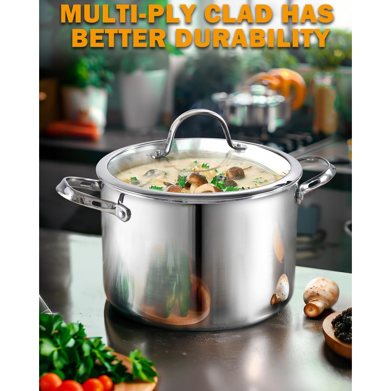 - Multi-Purpose: The stainless steel 8 quart stockpot is versatile for various cooking methods, including stewing, boiling, frying, and more; Whether for everyday cooking or family gatherings, this stockpot provides you with an efficient cooking experience