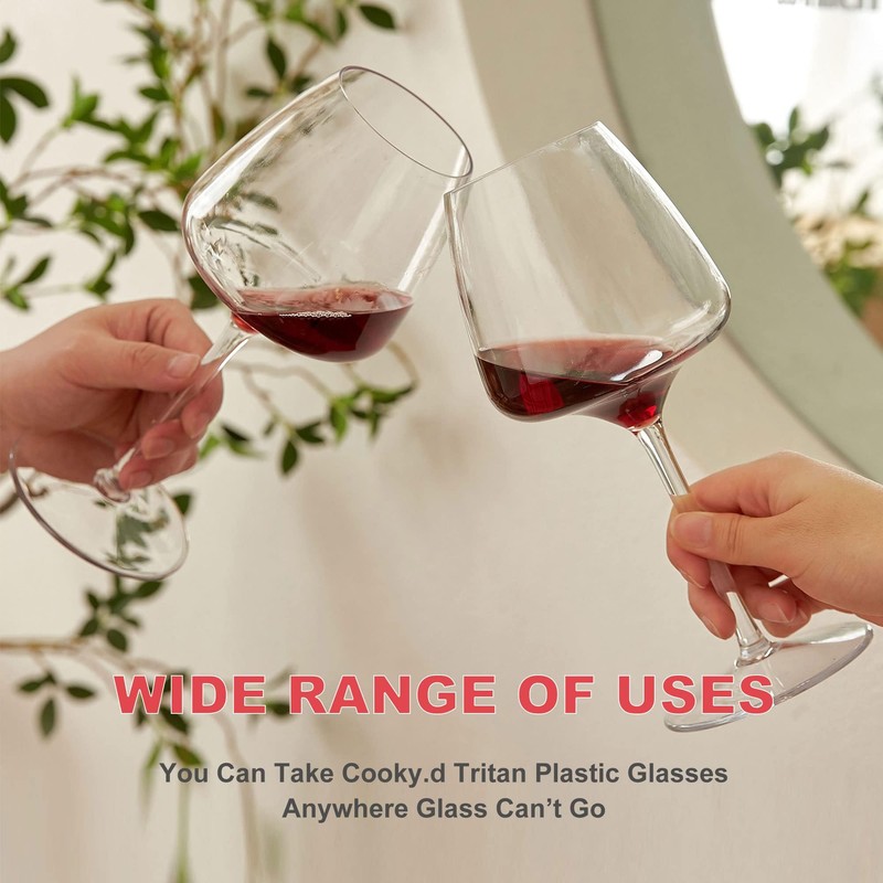 COOKY.D Unzerbrechliche Tritan-Gläser Weingläser mit Langstiel Rotweingläser spülmaschinenfest 610ml / 21.4 OZ Elegantes Hochzeitsgeschenk,2er Set