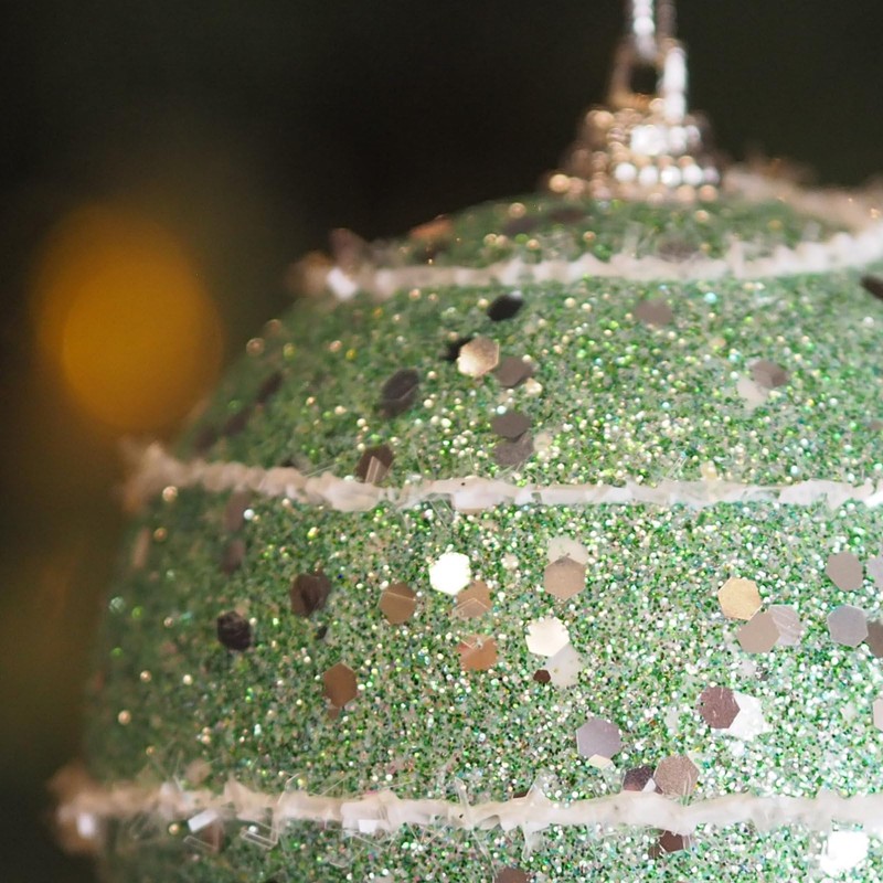 - Festive Glitter Design: Each ornament is covered in sparkling green glitter, creating a bright and festive look.