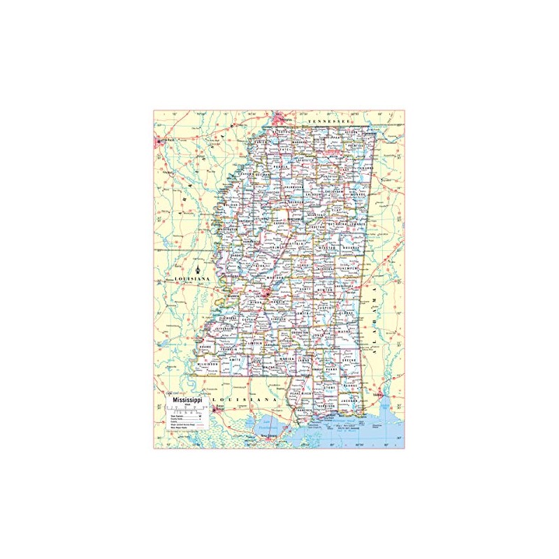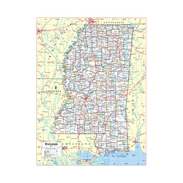Cool Owl Maps Mississippi State Wall Map Poster Large Print Rolled 24"Wx32"H (Laminated)