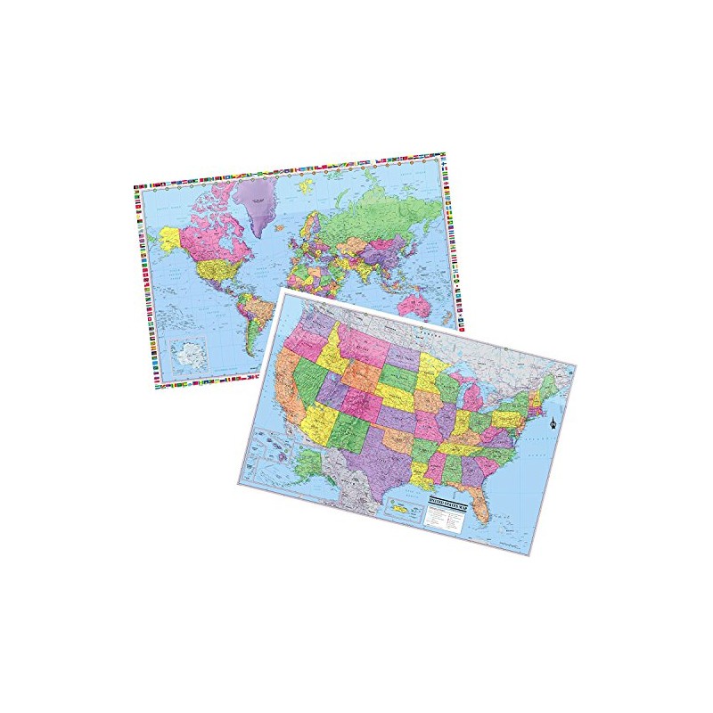 Cool Owl Maps United States & World Wall Maps - 2 Folded Paper Map Set (36"x24" when unfolded)