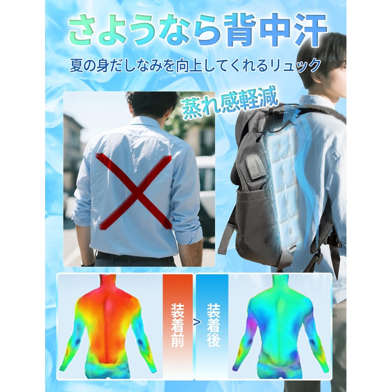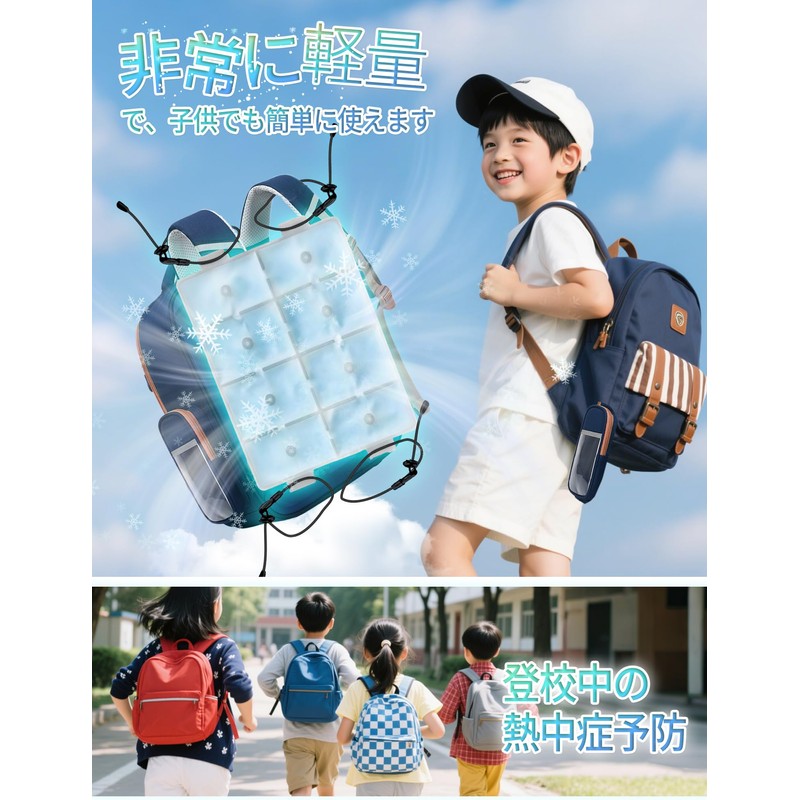 • (Cooling Pad for Backpacks) The cooling pad uses PCM cooling material to prevent heat from the back. Reduces stuffiness in the backpack and helps prevent heatstroke. A must-have item for summer commuting to work or school
