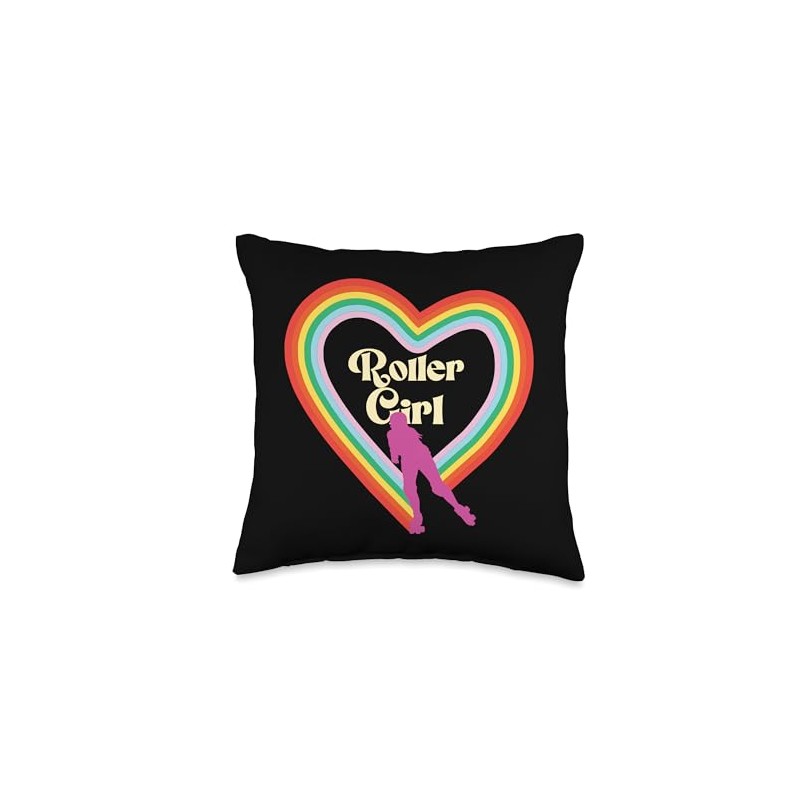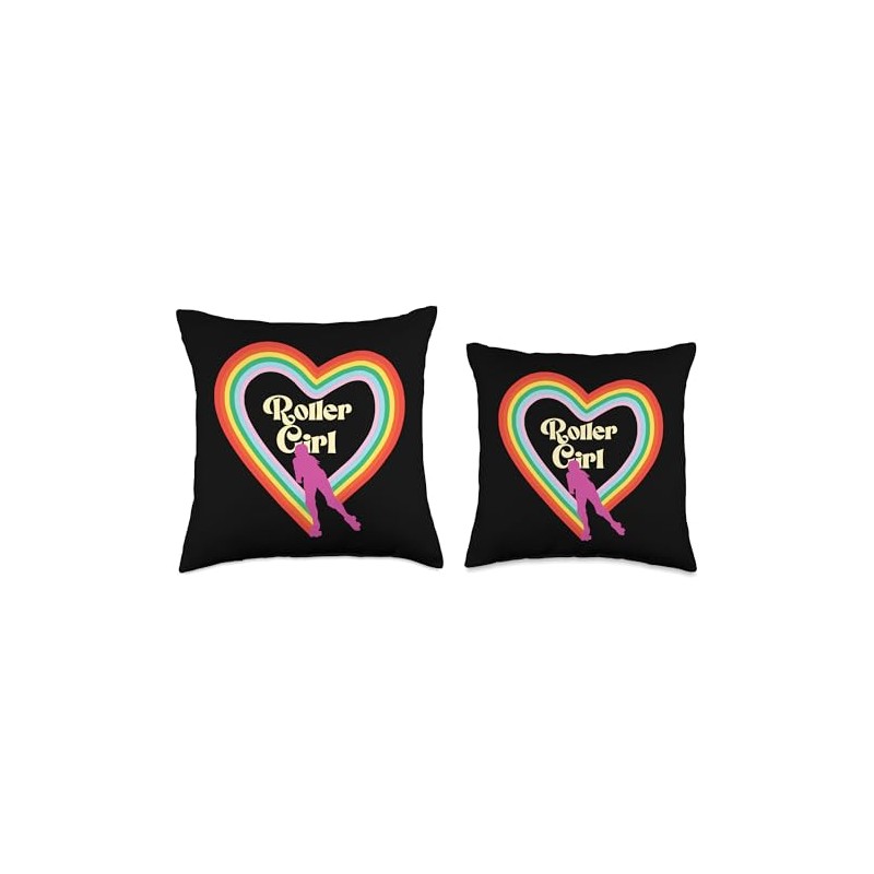 Cool Roller Skating Skate Girl Rainbow Heart Throw Pillow