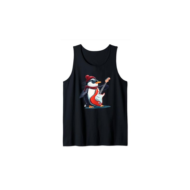 Cool Sunglasses Penguin with Rock'n Roll Guitar Costume Tank Top