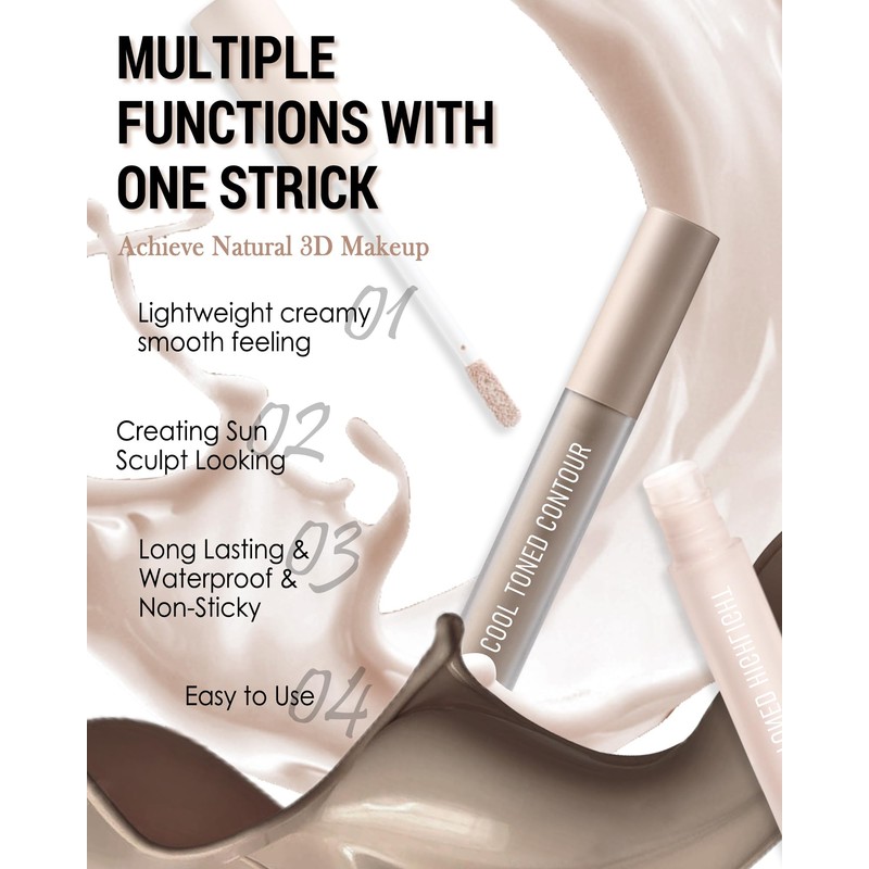 - Cool Gray Liquid Contour Stick - - This contour stick breaks through the limitations of traditional warm-tone contouring that tends to show dirt, and with one stroke on the area to be contoured, the contour instantly converges without leaving a trace, achieving a natural, three-dimensional makeup look like the original bone phase.