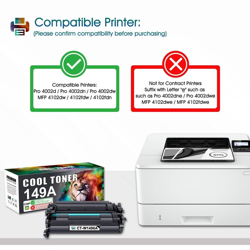 - Cool Toner Compatible 149A Toner Cartridges Replacement for HP 149A 149X W1490A W1490X Laserjet Pro MFP 4102fdw Toner