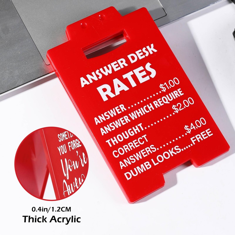 Cool Work Gifts Funny Answer Desk Rates Desk Sign for Men Women Coworker Boss (Answer Desk Rates)