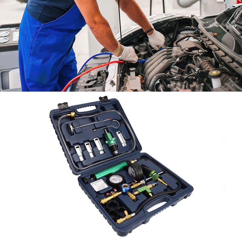 - Efficient and Convenient: coolant refill tool kit is a highly efficient and convenient toolbox that includes various testing tools and accessories to quickly and easily detect leaks and pressure in your car's coolant system.