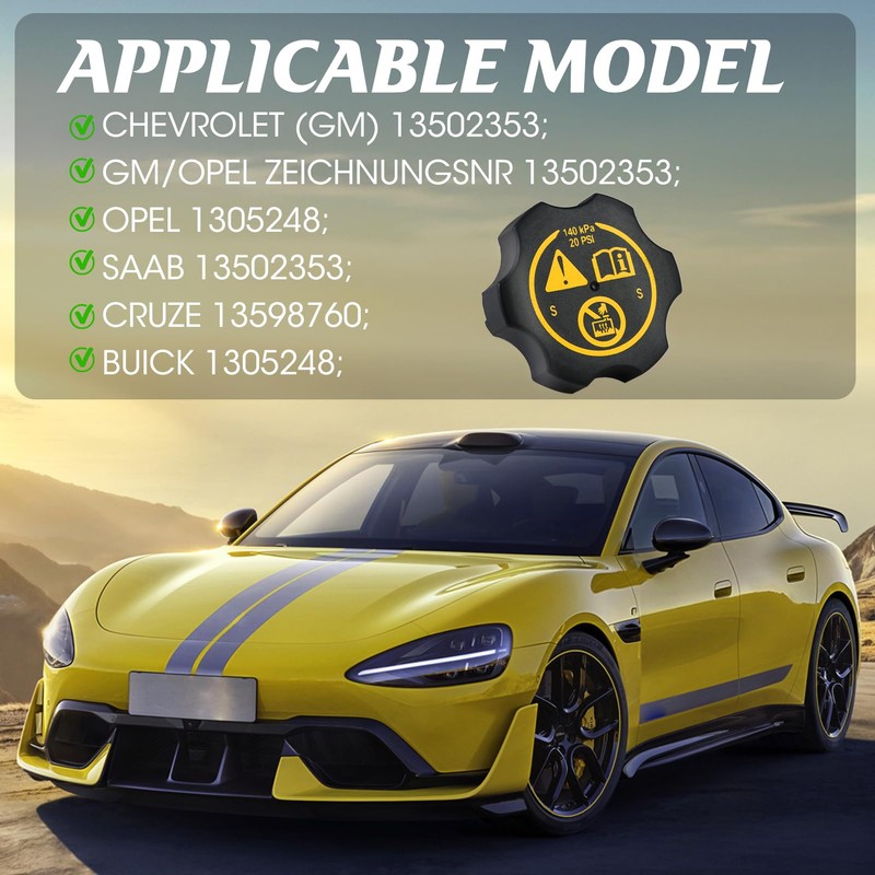 - Precision OEM Fit – Direct replacement for original part numbers 13502353, 13598760, 1305248 –coolant cap replacement ensures proper 1.1 bar pressure regulation in coolant systems.