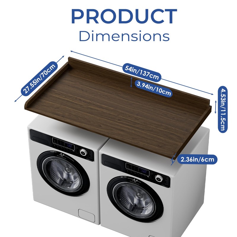 • Enhance Your Laundry Room: Washer dryer countertop measures 54"W x 27.5"D x 4.53"H to fit most washer and dryer combos. Washer and dryer countertop offers plenty of room for your laundry room organization and storage, convenient for folding, ironing clothes and organizing items, greatly improving space utilization, easing your daily life and keeping a tidy space.