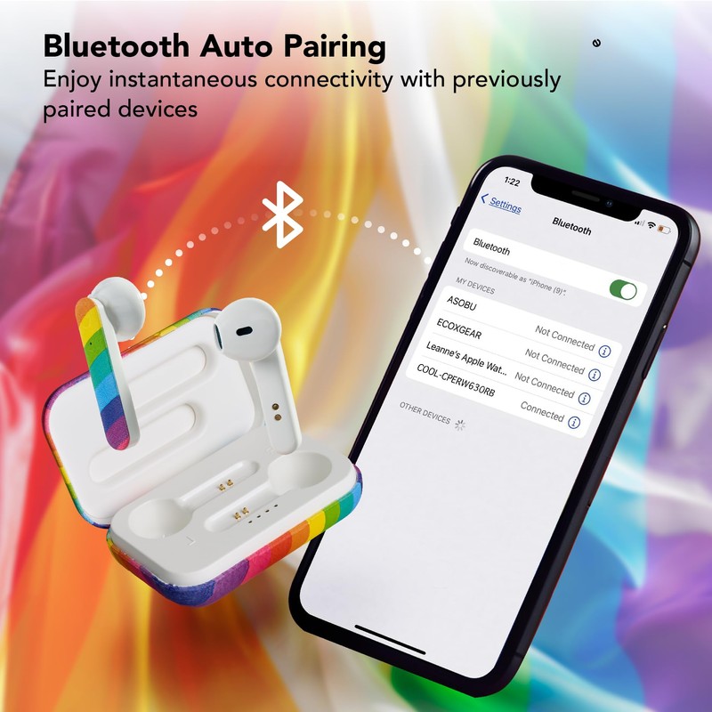 - Perfect Fit: The CoolBuds Wireless Earbuds feature a beautiful rainbow design that allows them to fit any ear with minimal issues, essentially providing a comfortable fit for anybody who uses them.