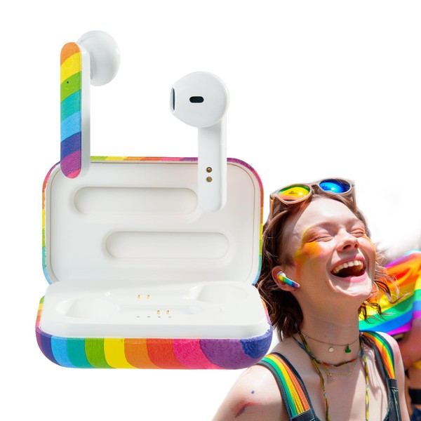 COOLBUDS True Wireless Earbuds, Earphones with Mic and Touch Controls, Rechargeable Bluetooth Earbuds, Compatible with Phones, 22-Hour Battery Life, Charging Case Included, Rainbow Pride