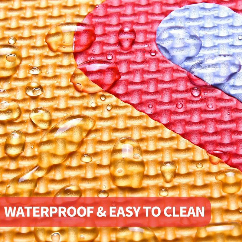- Clean-Friendly Design --- Waterproof surface resists spills/stains. Wipe messes instantly with baby wipes. Hypoallergenic & non-slip for sensitive skin