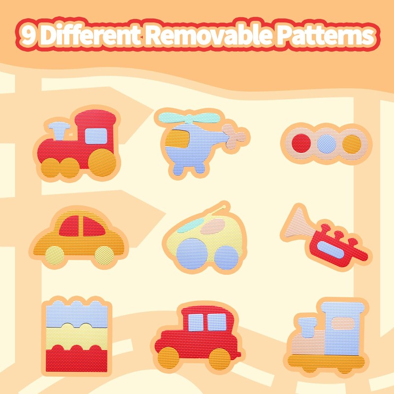 - Safety & Easy Setup --- 47.4"x47.4" (10.8 sq ft) soft EVA foam mat with interlocking tiles. 0.4" thick cushion prevents falls. Assemble in 5 mins – 9 base + 12 edge + 4 corner pieces. Meets ASTM F963-17 safety standards with phthalate-free materials