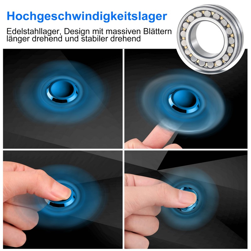- Easy to use: Hold the hand spinner in one hand and turn it quickly with the other hand with small, continuous strokes to rotate it indefinitely with exercise. To rotate on a table, simply press the centre to keep it quiet and rotate at the same time.