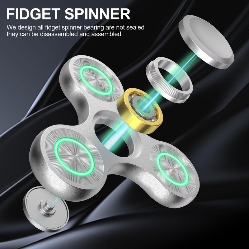 - Durable and solid material: the luminous fidget spinner toy is made of high-quality metal material. The premium steel bearing 608 ensures a much smoother and quieter experience when spinning. The fidget toys average spinning time is 60-270 seconds, waterproof and drip-proof
