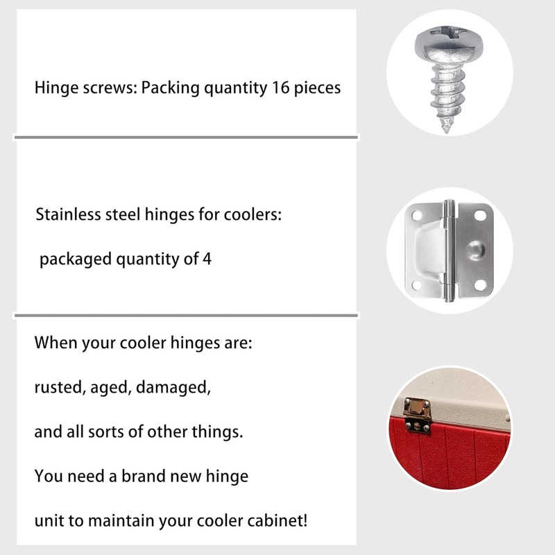 - Cooler Hinges : Size 2" x 2.125". Include:2 hinges and 8 screws