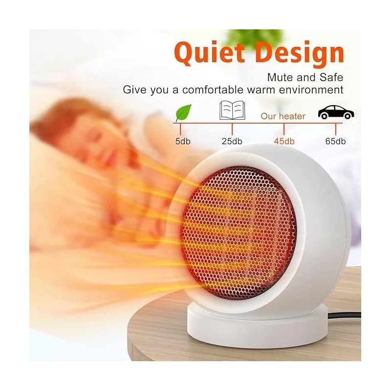 The desktop heater is lower than 45db while working,sleeping,it is perfect for Winter season and freezing nights.