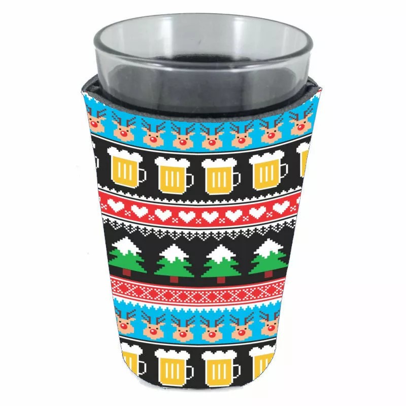 Coolie Junction Reindeer and Beers Christmas Pattern Pint Glass Coolie, Holiday Party
