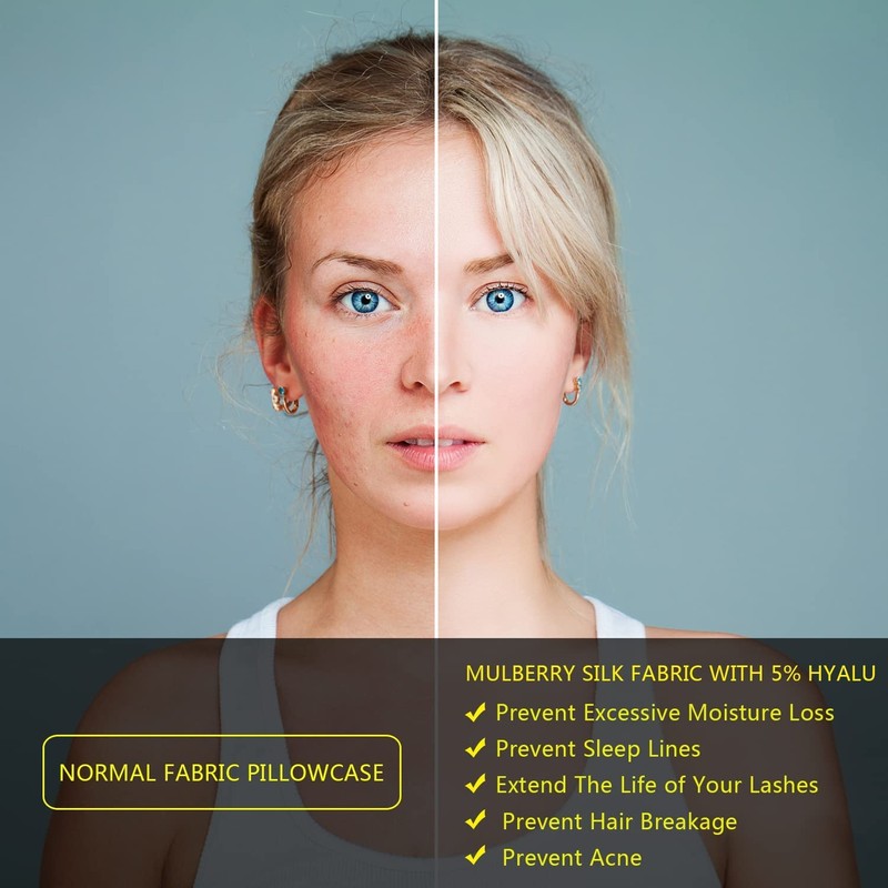 - đź’ŽEnhance Your Beauty Sleep: Sleeping on our hypoallergenic non-irritating satin pillowcase can help your skin, too. With less friction tugging at your skin as you sleep, you will experience fewer sleep lines which can equal fewer wrinkles over time.