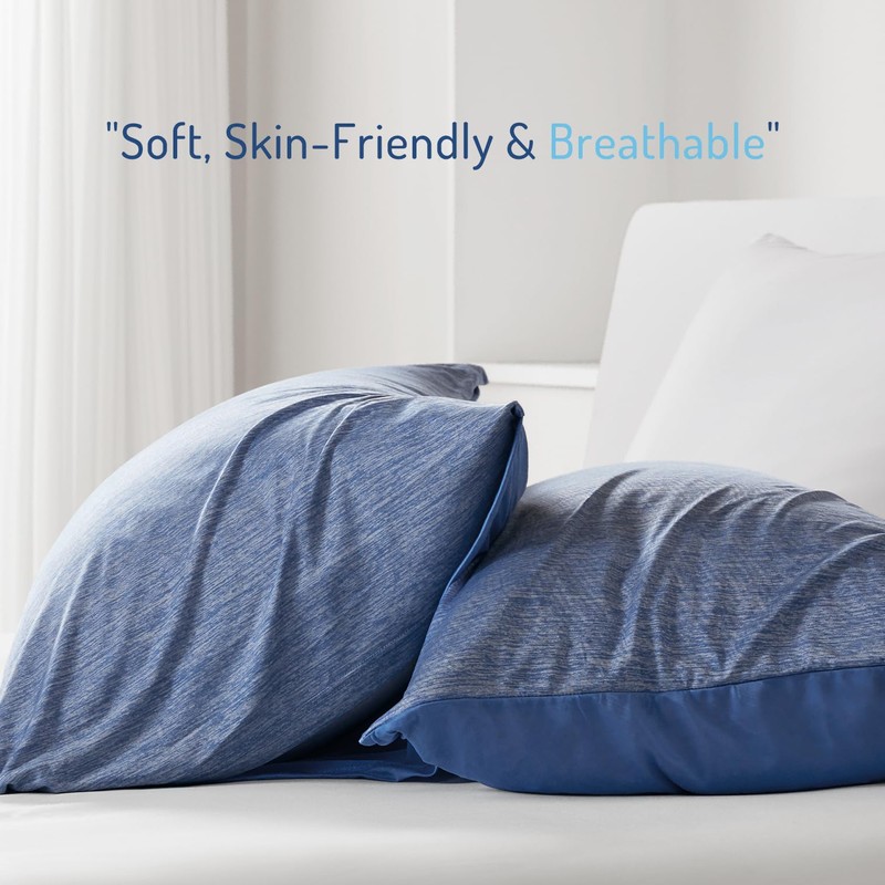 - All Night Chill: Crafted from a breathable 190gsm nylon-polyethylene blend with special structure, this cooling pillowcase rapidly absorbs body heat, enhances airflow, and disperses heat to prevent overheating—delivering instant cool-to-touch sensation and all-night breathable comfort for hot sleepers or summer nights.