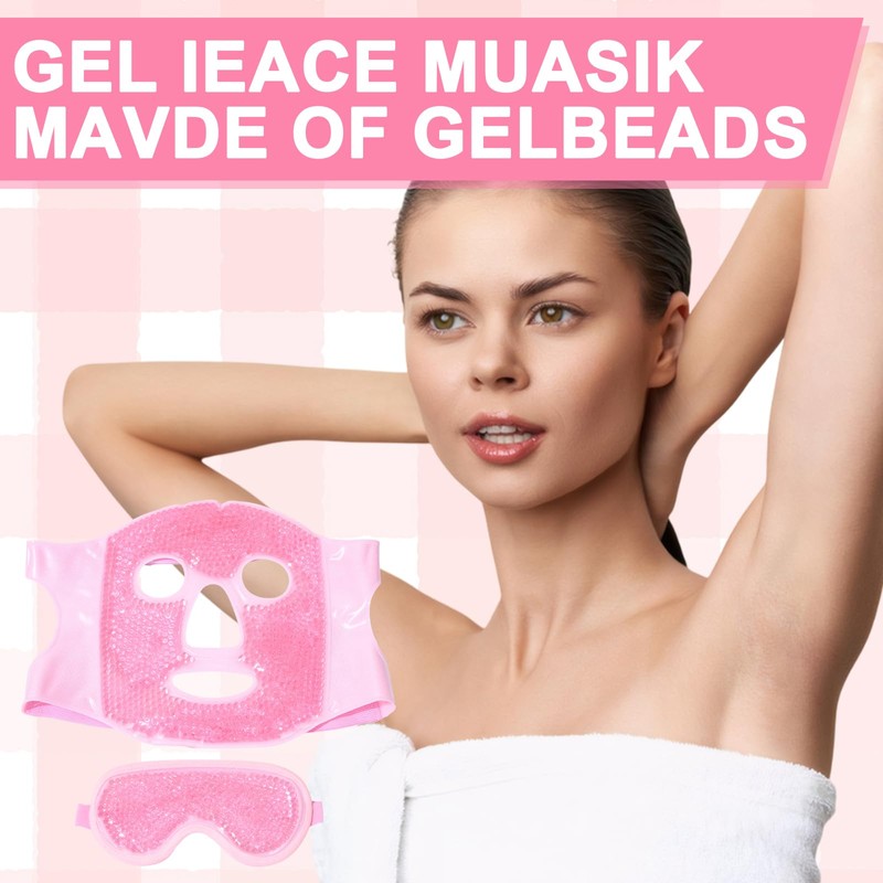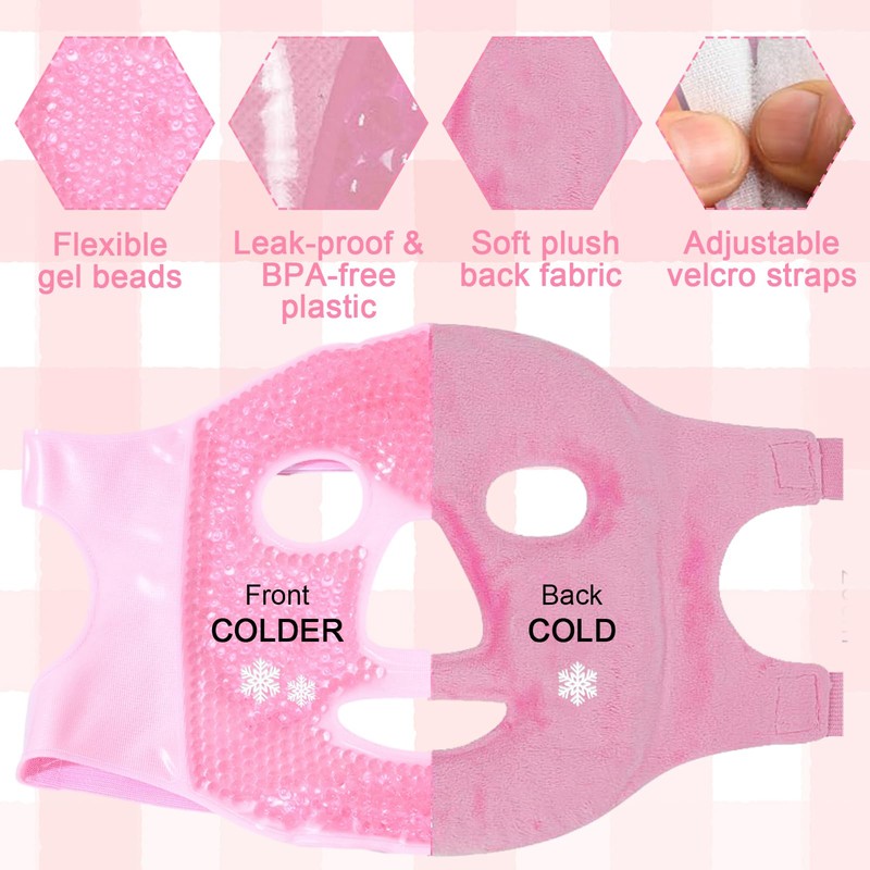 Cooling Face Mask, Reusable, Soothing Face Cooling Mask, Stress Relief Relaxation, for Puffy Face, with 1 Eyemask, Pink